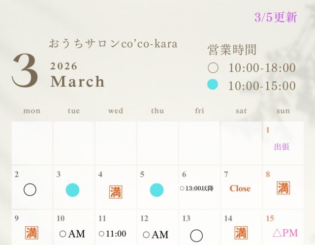 【3月】営業日カレンダー